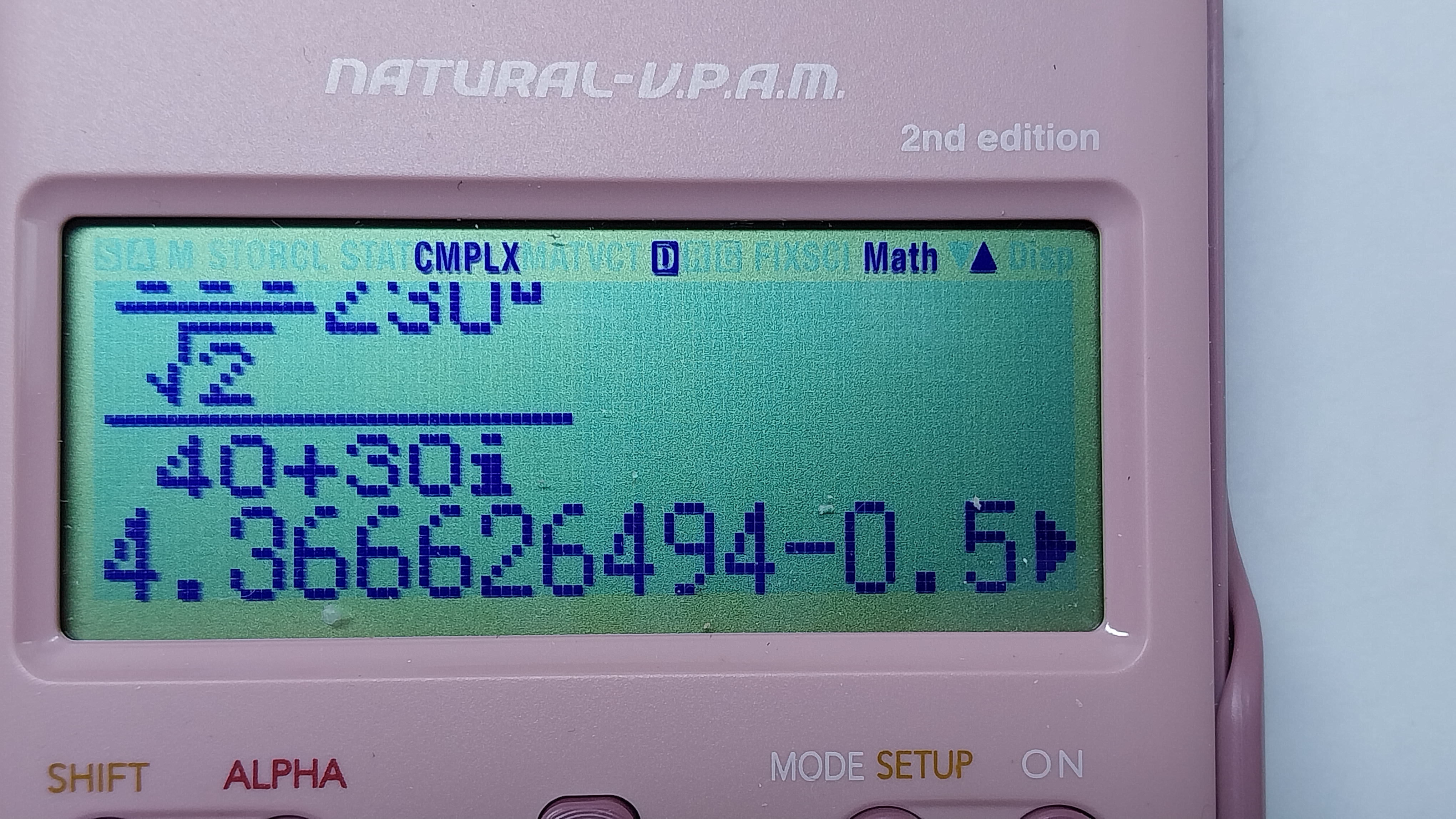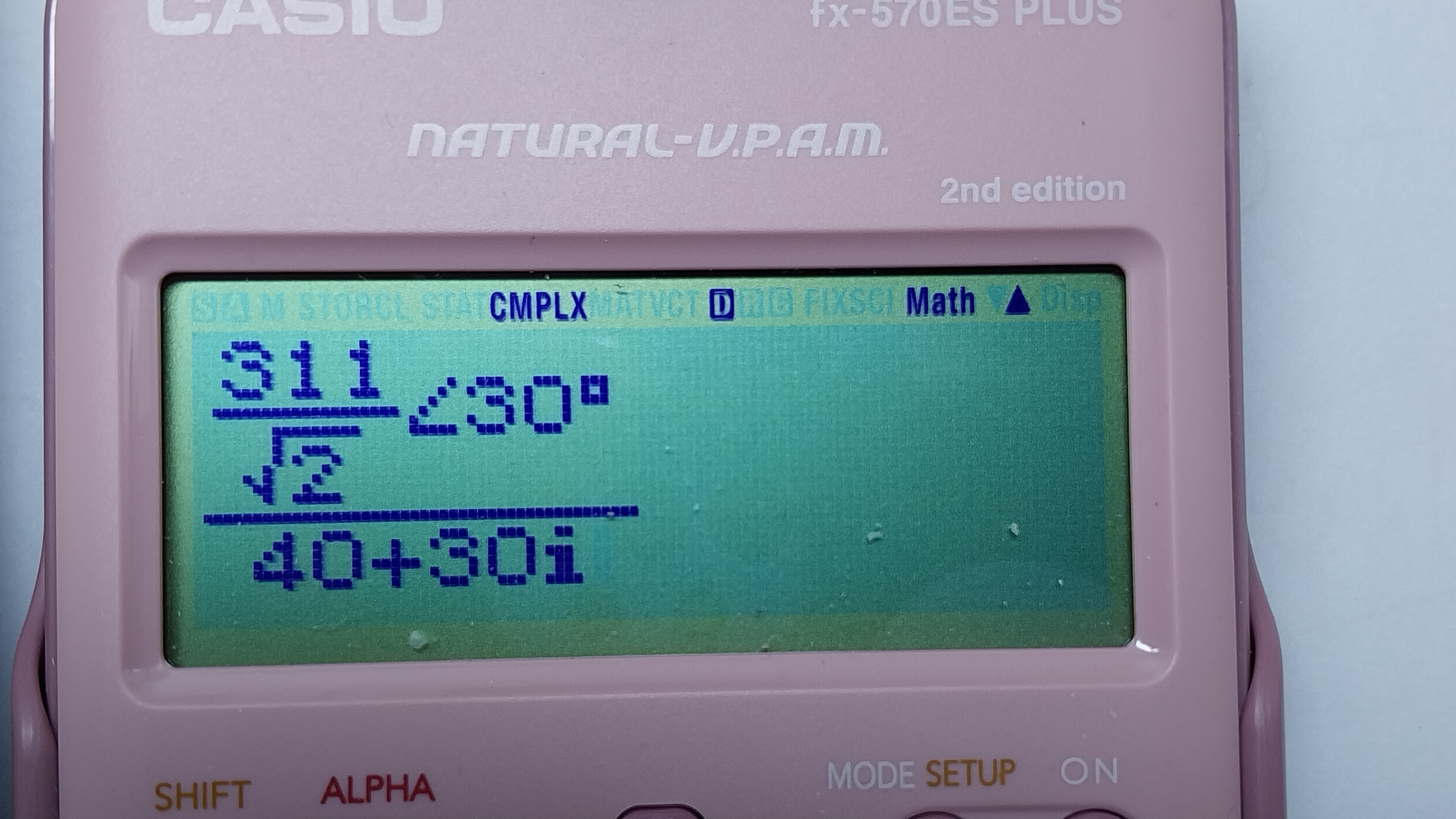 결괏값에서 【SHIFT】 -> 【2】 -> 【3】 -> 【=】 버튼을 눌러복소수를 페이저로 변환할 수 있습니다.