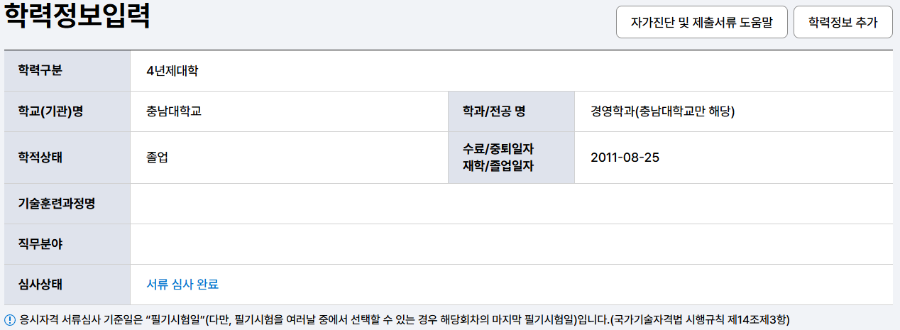 보시다시피, 큐넷 응시자격 제출내역상 지방국립대 경영학과 졸업생이며, 사회경력도 유통/금융/보험 계열쪽에서 종사하여 전기 관련 아무런 지식 및 경력이 없었습니다.